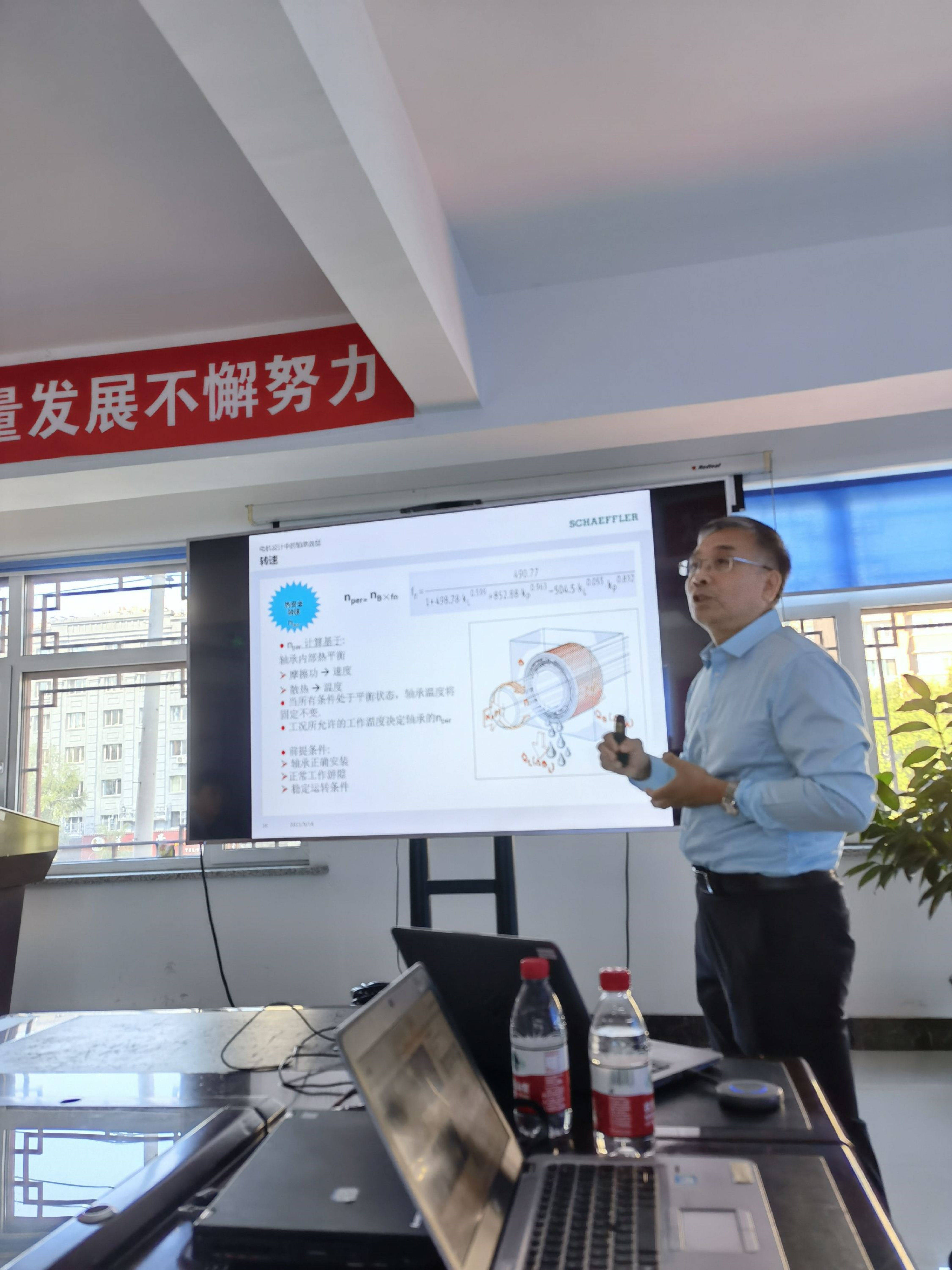 2021年9月14日我公司應(yīng)佳木斯電機(jī)股份有限公司邀請(qǐng)舉行專(zhuān)場(chǎng)FAG軸承技術(shù)交流會(huì)議。在舍弗勒(上海)貿(mào)易有限公司鼎力支持下張明義 、張之濱、劉元朋三位高級(jí)工程師出席技術(shù)交流會(huì)議并做相關(guān)技術(shù)培訓(xùn)。佳木斯電機(jī)股份有限公司設(shè)計(jì)部、工藝部、質(zhì)檢部等各部門(mén)科室領(lǐng)導(dǎo)共七十余人參加會(huì)議。